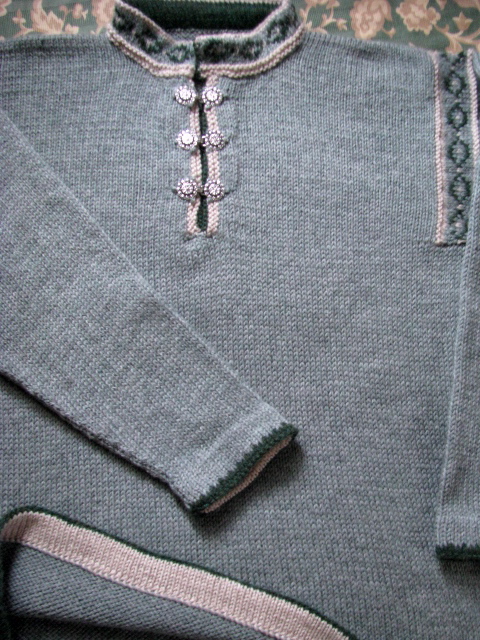 This design by Louise is one I have made in all different sizes, great for little baby boy gifts. Knits on a size seven needle. However, that being said, this one is a size 42…..The Winsor Tyrolean pattern calls for sweater to be knit in pieces and I knit it in the round, much quicker. Here are some instructions particular to this adult Tyrolean pattern for how to knit on circular needles.