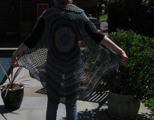 Sharon, I just came back from a big craft show in Toronto where I had seen a circular vest knitted up. The vendor did not sell the pattern! So I came home and surfed for it. I found your posting instead and I like yours better! It is lovely in your photos! Can you please send me the pattern? I tried to send a note to your email, but it bounced. Thanks!!!