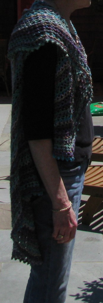 Just finished this circular vest. It’s an easy, free knitting pattern once offered by Elann.com you can knit with no problem and it’s fun to do. The free pattern is available here for personal use only.