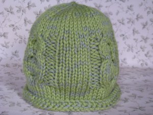 Knit in the round, it’s designed to fit a 6-12 mos. old baby, and I also have larger sized patterns with more owls available, please email me at spwatterson at gmail dot com.