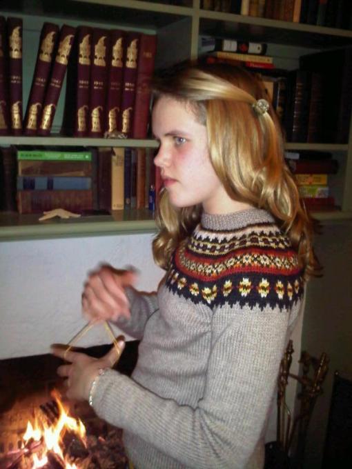 It’s a new year, and for me, it has meant, thankfully, new followers here on WordPress, many thank you’s. Also, I’m returning to some enjoyable knitting projects of long ago when knitting for our children as teenagers and young adults and just finished this Fair Isle pullover or jumper. It’s a free pattern and was the sweater Scarlett Johansson wore in the film, “We Bought a Zoo” with Matt Damon.