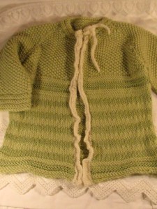 a Scandinavian theme, edged in Nordic knitted lace. This toddler sweater set is perfect for that special new baby shower gift. Designed for the one to two year old carriage set.