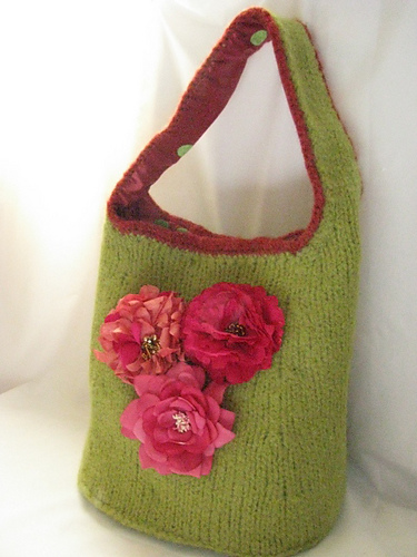 Felted Hobo Bag, a free knitting pattern, lined and embellished with a squirrel.