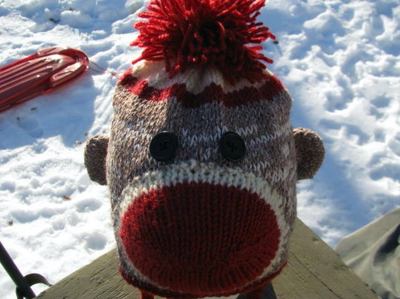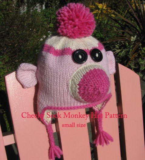 Sock Monkey Hat knitting pattern for baby and toddlers – finished measurement is 16″(41 cm) unstretched and unblocked. Knit in the round with lined earflaps and brim. Construction of this smaller size sock monkey hat is different from the original hat pattern above. Pattern is 7 pages with detailed photos and knitting instructions written in American English. For immediate download $5.95